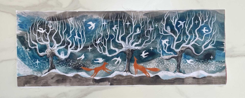 This wintery scene was intended for a 20cm lampshade and it could be used for your own or other project such as a cushion cover, place mat etc.