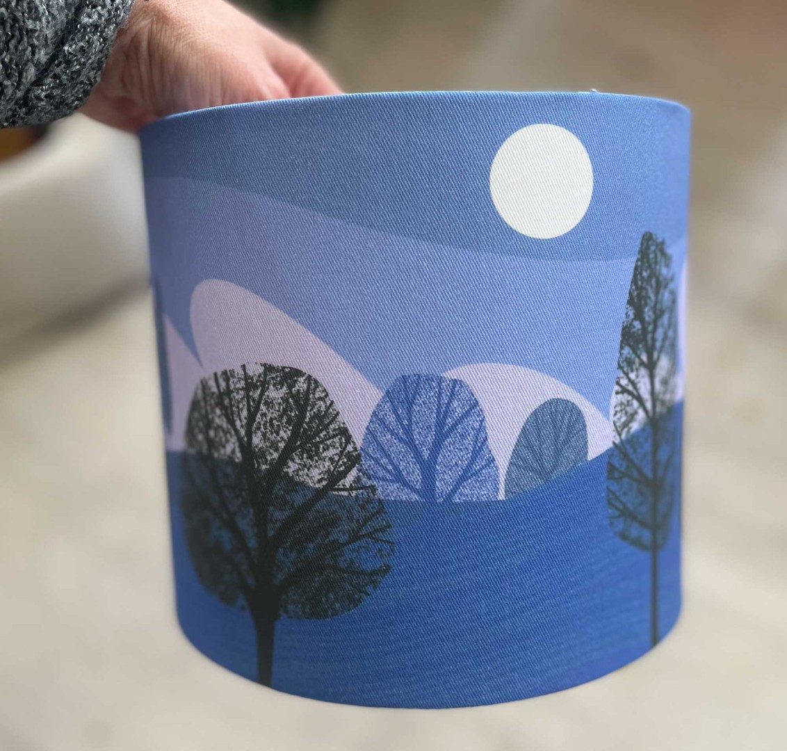 Add to favouritesA restful scene in shades of blue and black. A small handmade lampshade for a ceiling pendant.