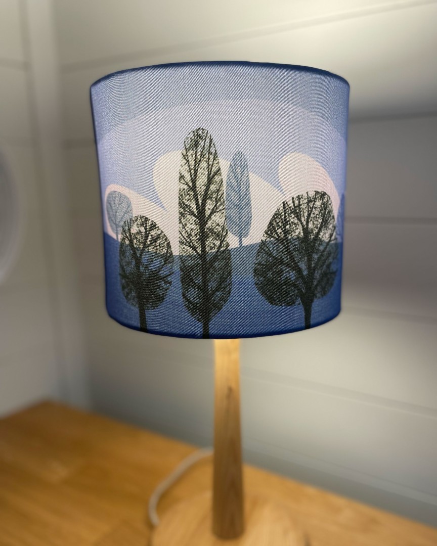 Add to favouritesA restful scene in shades of blue and black. A small handmade lampshade ideal for a bedside table. Also available for ceiling